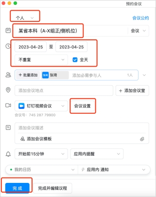 张琦 邀请你参加钉钉会议 主题:某省本科(A-X组正/侧机位) 时间:2023-04-25 14:19 - 会议号:745 287 79900 - 入会链接:https://meeting.dingtalk.com/app?roomCode=74528779900&token=1_6415b787-1a8d-4b65-b954-a996f4326cad,电脑端可通过浏览器入会,无需下载钉钉