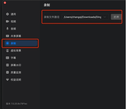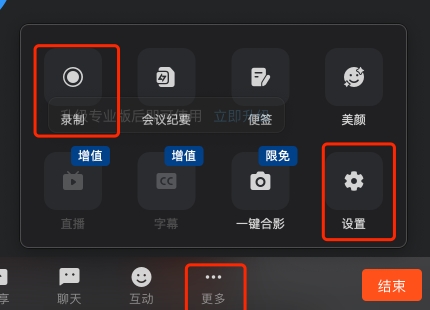 点击更多-选择设置,在设置中查看录制文件保留路径,确保本地录制!
