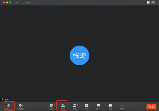 预定好会议室后,进入会议室如下:将自己的麦克风关闭,有发言时再打开。