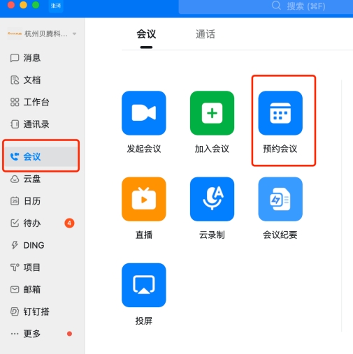 准备一台麦克风正常的电脑,安装钉钉,点击会议--预约会议