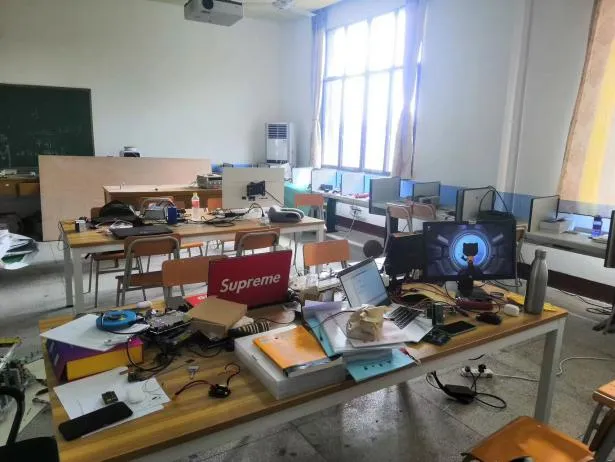 团队始建于2016年,建队时经费紧缺,为了一枚齿轮、一块铝板,“衡山π”队员们跑遍市场,连最基本的传感器都要靠“AA制”凑钱购买。实验室像一支“游牧部落”,从红湘校区科创楼的角落,到致远园的临时空间,再到雨母校区逸夫楼的机房,甚至辗转于冬冷夏热的老图书馆二楼、三楼……每一次搬迁都带着设备的颠簸和重新开始的勇气。直到如今扎根学生活动中心的全新基地,那些艰辛的过去成了勋章——空间的扩充、设备的升级,记录着学校的支持,更刻下了团队“从无到有”的坚强。
