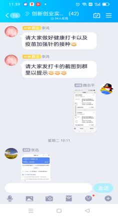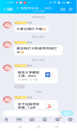 中心教职员工严格按照学校要求进行健康打卡和疫苗加强针的接种工作,做到应接尽接,同时,办公室主任及时上传学校疫情防控规定并在创新创业训练中心工作群中督促中心教职员工进行健康打卡工作。