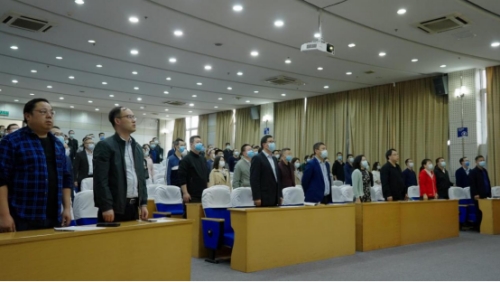 在庄严雄壮的国歌声中,大会拉开帷幕。