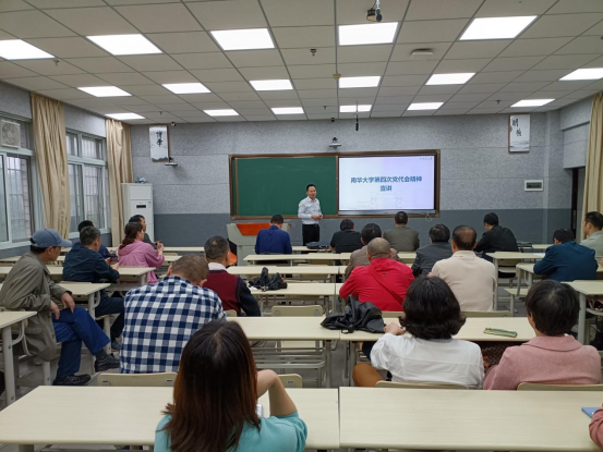 王湘江在总结中表示,全体教职工要把学习宣传贯彻第四次党代会精神与学习习近平总书记在中国人民大学考察时的讲话精神、在庆祝中国共产主义青年团成立100周年大会上的讲话精神结合起来,要强化责任担当,要把学习贯彻第四次党代会精神作为当前和今后一个时期的重要任务,统一思想、凝心聚力,以更加坚定的信心、更加昂扬的斗志、更加务实的作风,投身建设新时代高水平大学的新征程。