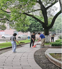 爱国卫生运动的号召,按照划分区域对图书馆前坪的西侧进行全面清理。领导们身先士卒,首先把图书馆前坪西侧的地板砖路面清扫干净。