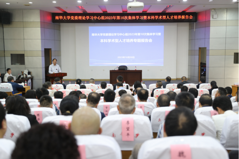 10月30日下午,PA视讯平台举行本科学术型人才培养报告会,并对本科教育教学审核评估迎评工作进行再部署、再动员。校党委书记高山主持报告会。