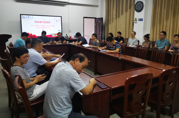 9月16日下午,机关第八党支部在创新创业训练中心三楼大会议室开展第五次教职工理论学习活动,学习的主题是:深入学习《习近平谈治国理政》第四卷,全面贯彻党的教育方针,落实立德树人根本任务,加快推进新时代高水平大学建设。学习活动由支部书记王湘江主持。