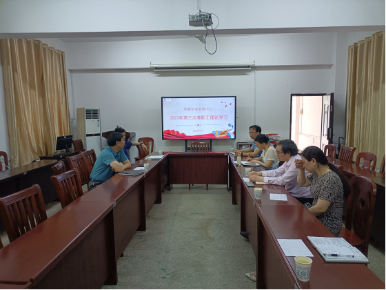 按照学校要求,5月26日下午,创新创业训练中心在三楼会议室开展2023年5月份教职工理论学习,全体没课的老师参加,会议由王湘江主任主持。本次学习的主题是:深入学习贯彻党的二十大精神,全面学习贯彻习近平总书记关于中国式现代化、推动高质量发展、扎实推进共同富裕的重要论述,努力办好人民满意的教育。