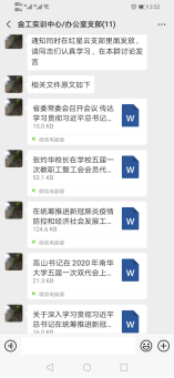 ①在红星云网上支部发布本次主题党日通知预告,让所有党员同志了解本次主题党日的开展形式;②在支部微信群上传学习内容,《在统筹推进新冠肺炎疫情防控和经济社会发展工作部署会议上的讲话(习近平重要讲话)》、《省委常委会召开会议 传达学习贯彻习近平总书记在统筹推进新冠肺炎疫情防控和经济社会发展工作部署会议上的重要讲话精神(杜家毫书记)》、《高山书记在2020年PA视讯平台五届一次双代会上讲话(印发稿)》、张灼华校长在学校五届一次教职工暨工会会员代表大会上的报告(印发稿),组织党员自主学习、集中讨论;③强化各位党员同志在学习强国的学习、拓展学习相关内容。