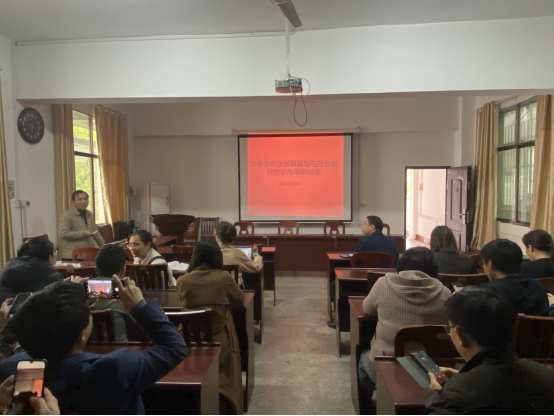 2021年3月16日上午11点,创新创业学院在院3楼会议室组织开展《大学生职业发展与就业指导》授课教师教研活动。各学院的授课老师代表参加此次教研活动。创新创业学院陈善柳副院长进行了课程建设的综合讲述。